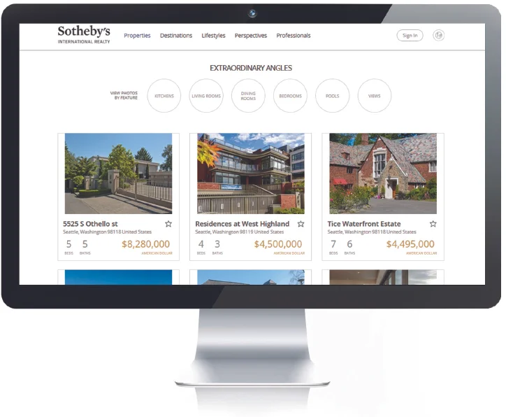 The Sotheby’s Real Estate website, SIR.com, attracts more consumers to search, view and inquire than any other luxury real estate website. The collaboration between realty and auction leverages our brand’s rich history, heritage and sophistication to enhance market perceptions about the properties we represent.